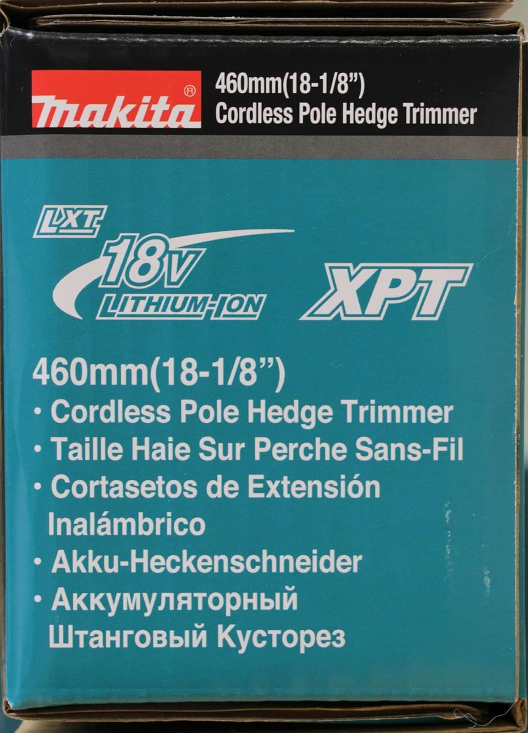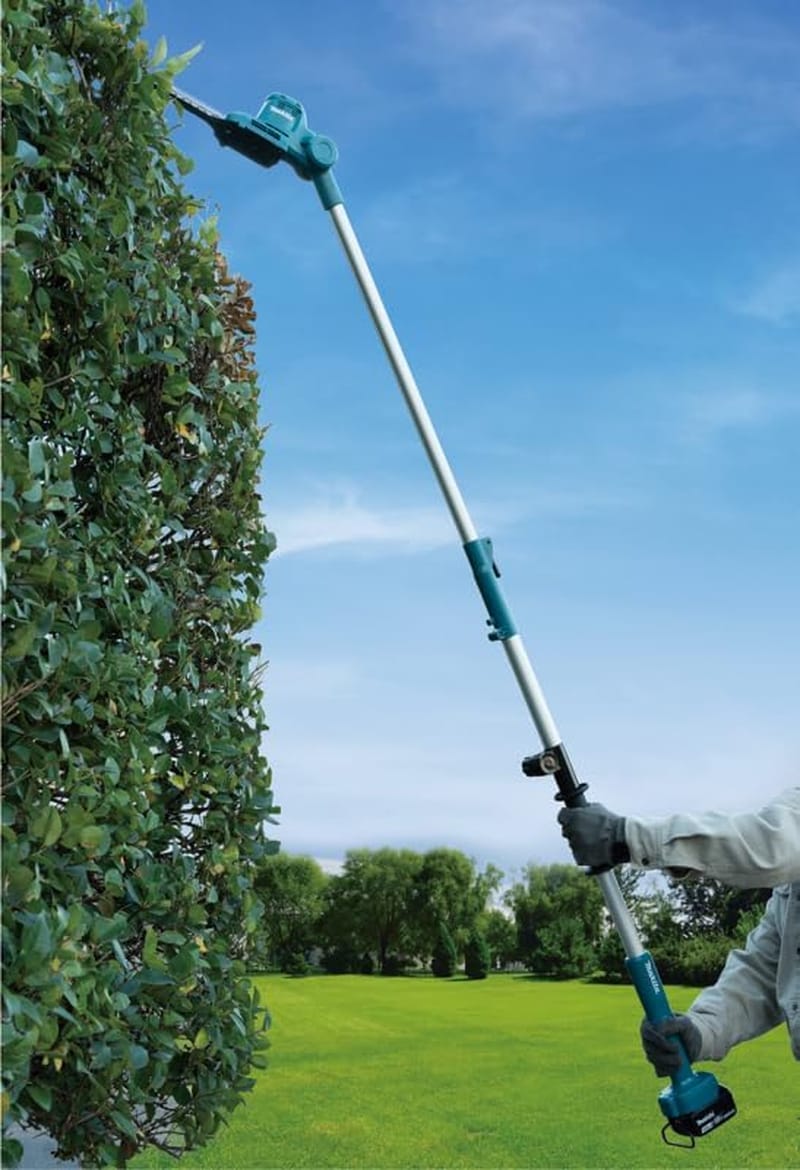 Die DUN461WZ ist mit einem Lock-Off-Knopf ausgestattet, 10 Winkeleinstellungen; der Winkel des Heckenscherenkopfes kann durch Drücken einer Taste verändert werden, winkelverstellbarer Heckenscherenkopf mit 60 Grad Neigung nach oben und 75 Grad Neigung nach unten von der horizontalen Position nach unten, umgekehrtes Drehsystem, um die Klinge zu befreien, wenn sie von dicken Ästen gestaut wird, und Teleskoprohr für die Schaftlängenverstellung zwischen 1,889 mm bis 2,89 mm 511 mm.