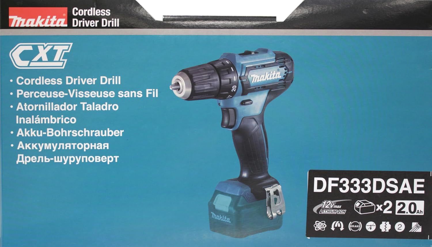 Der DF333DSAE wird von einem 12 Volt Akku angetrieben. Hier können Akkus mit 1,5 (BL1015/BL1016), 2,0 (BL1020B/BL1021B) und 4,0 Ah (BL1040/BL1041B) genutzt werden: umso höher die Amperestunden (Ah), desto länger ist der Akku-Bohrschrauber mit einer Akkuladung nutzbar. Zudem sind auch 10,8V Schiebe-Akkus mit unseren 12V max. Maschinen kompatibel und können problemlos eingesetzt werden.